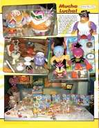 With the success of ¡Mucha Lucha!, Jakks Pacific had plans to release merchandise and products. In February 2004, most toys were first seen in New York Toy Fair 2004 along with the prototype toys that may not be released. Most products were available for preorder online and it was released on February 25, 2004, in Toys R Us, Target, Amazon, Google Shopping (formerly known as Froogle), and Cartoon Network Online Store. However, it was only released in USA and not released internationally.