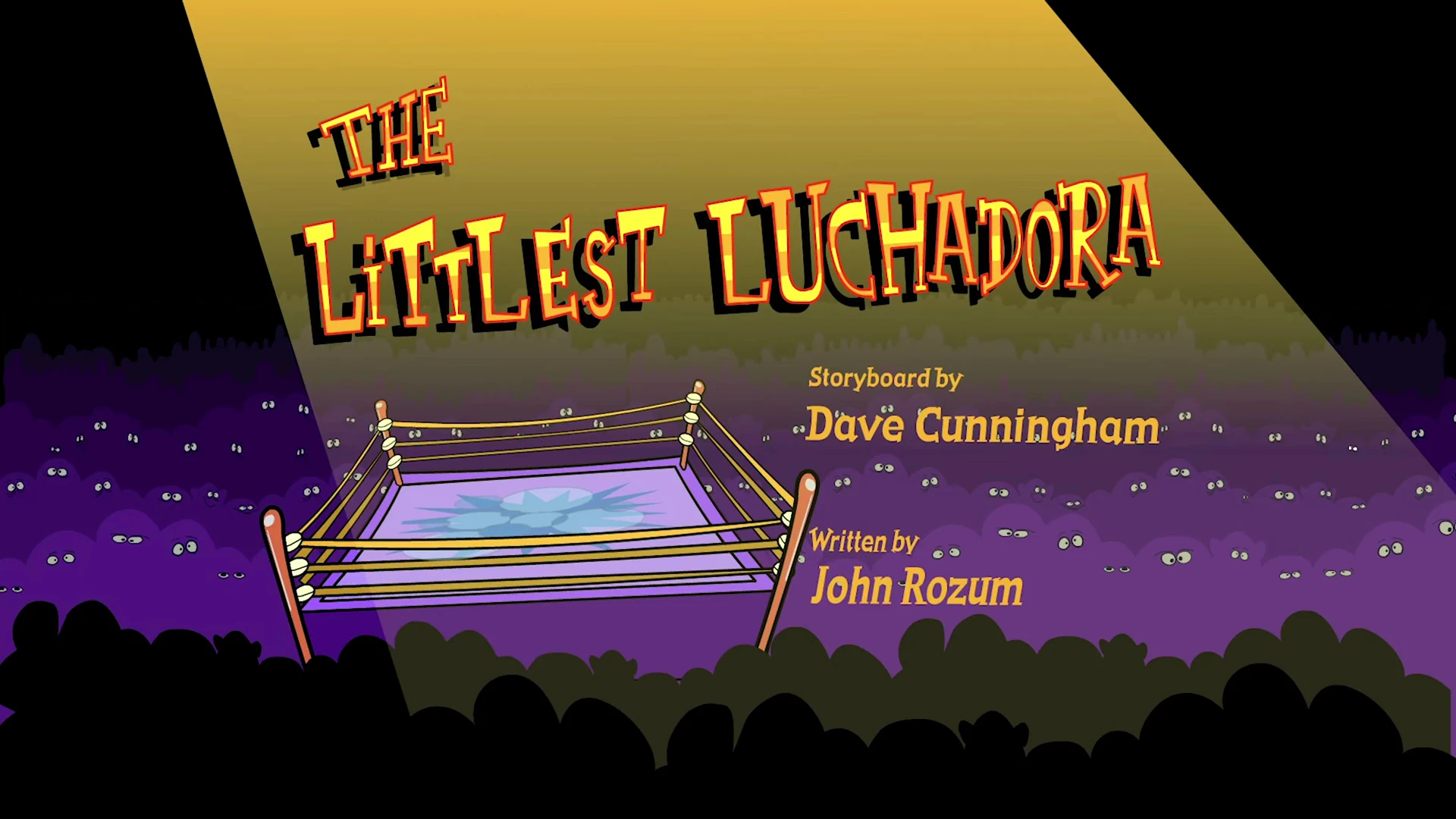 - The shots of the The Three Mascaritas exploring the underground (from "Our Founder") is replaced by Rikochet shouting out "Honor! Family! Tradition!" (from "Back to School"), followed by a similar shot of The Flea eating donuts, and finally shots of the The Three Mascaritas with their respective dads (from "Bring Your Dad to Lucha Day").