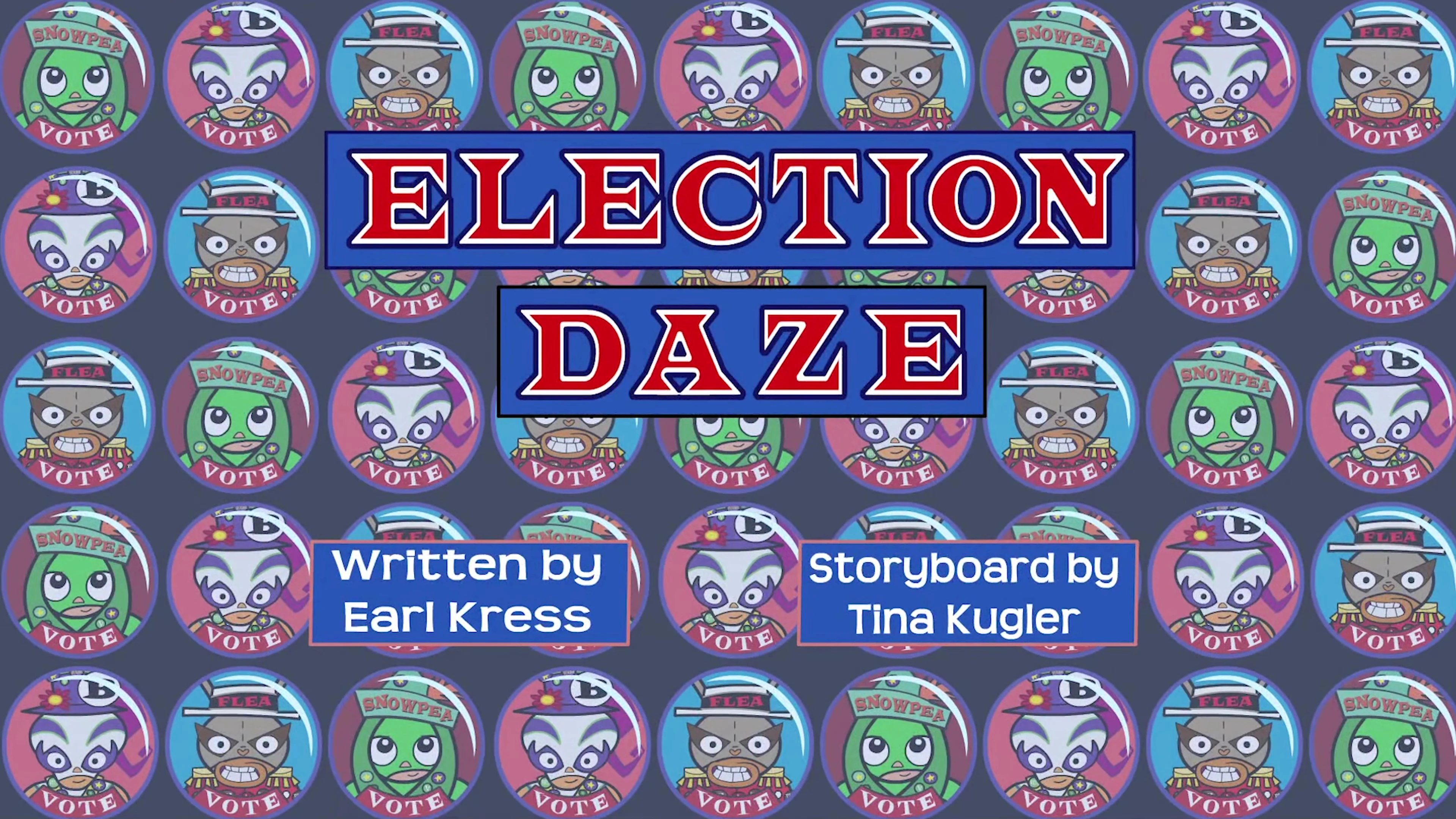 | Buena Girl, The Flea, and Snow Pea are running for school president. Buena Girl promises good things, The Flea promises chewy shoes and butter snacks. Snow Pea promises "Snow Pea!" Meanwhile, Tibor the Terrible, El Loco Mosquito, and El Perrito try to take over the Student Council. | ||||